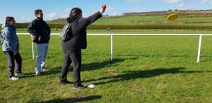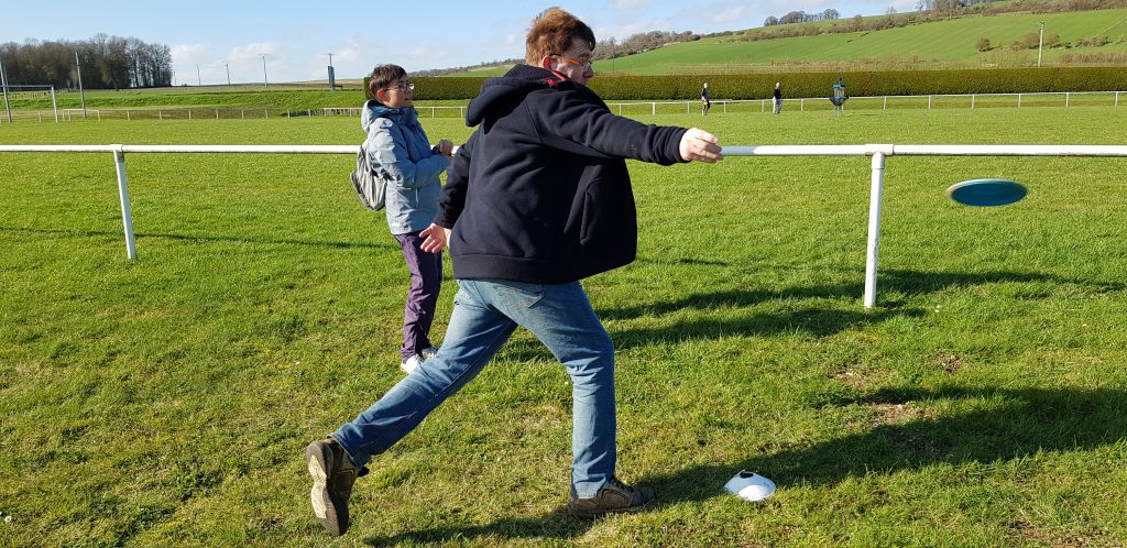 C’est par un beau soleil qu’une quinzaine de participants a pu découvrir la pratique du disc golf. Après un apprentissage sur le terrain de foot de Goincourt avec Michaël notre moniteur diplômé, les disc golfers en herbe se sont affrontés à deux reprises sur un parcours de 6 trous de 45 à 120 m dans les champs alentours.